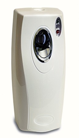 Erogatore automatico professionale, totalmente programmabile, per bombole aerosol a svuotamento temporizzato.