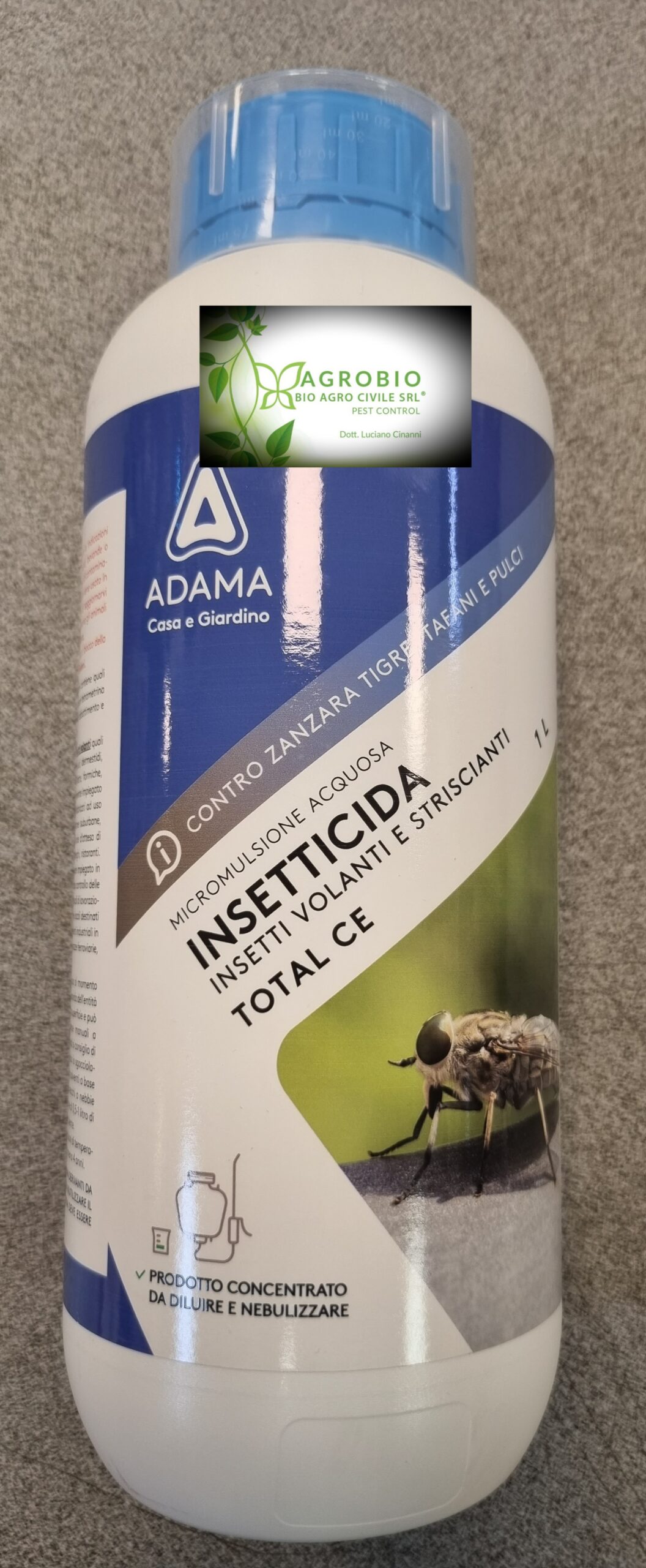 Insetticida in microemulsione acquosa che contiene quali principi attivi due piretroidi sintetici: permetrina e tetrametrina sinergizzati con piperonilbutossido, che gli conferiscono rapido potere abbattente e azione residua prolungata. TOTAL CE è destinato alla lotta contro insetti volanti quali zanzare, zanzara tigre, mosche, vespe, tafani, chironomidi, pulci, dermestidi, punteruoli, simulidi, tignole, lasioderma e striscianti quali blatte, formiche, pesciolini d’argento, punteruoli, tribolii. Può essere vantaggiosamente impiegato per la disinfestazione nei seguenti settori: igiene pubblica: fabbricati ad uso civile, industriale, agricolo, zootecnico, agglomerati urbani, aree suburbane, abitazioni, scuole ed asili, palestre, caserme, cinema, teatri, sale d’attesa di stazioni ed aeroporti. Inoltre villaggi turistici, campeggi, mense, alberghi, ristoranti, ospedali, case di cura, case di riposo ecc. Il prodotto può essere impiegato in giardini, prati, cespugli ornamentali, siepi e viali alberati per il solo controllo delle zanzare. Industria alimentare: per trattamenti a magazzini e locali di lavorazione (in assenza di alimenti). Industria del tabacco: magazzini e locali destinati alla produzione di sigarette ed allo stivaggio dei tabacchi. Ambienti industriali in genere. Zone ed attrezzature portuali. Mezzi di trasporto: carrozze ferroviarie, tram, pullman, mezzi di trasporto aerei e marittimi. Taglie disponibili: 250 ml; 1 Lt.